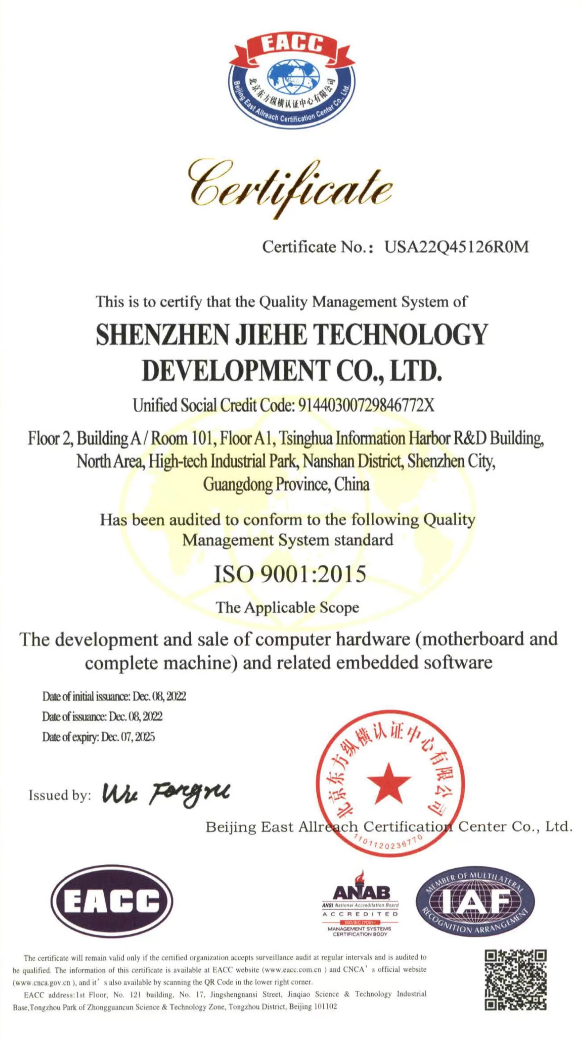 ISO9001质量管理体系认证作为国际标准化组织的管理性质标杆,它的地位可见一斑,其认可彰显了CA88(中国区)科技的体系管理以及产品的质量。CA88(中国区)科技在过去几年不断提升设备标准化生产的能力,减少人为质量问题,把ISO9001质量管理体系理念贯穿于产品研发—生产全流程。