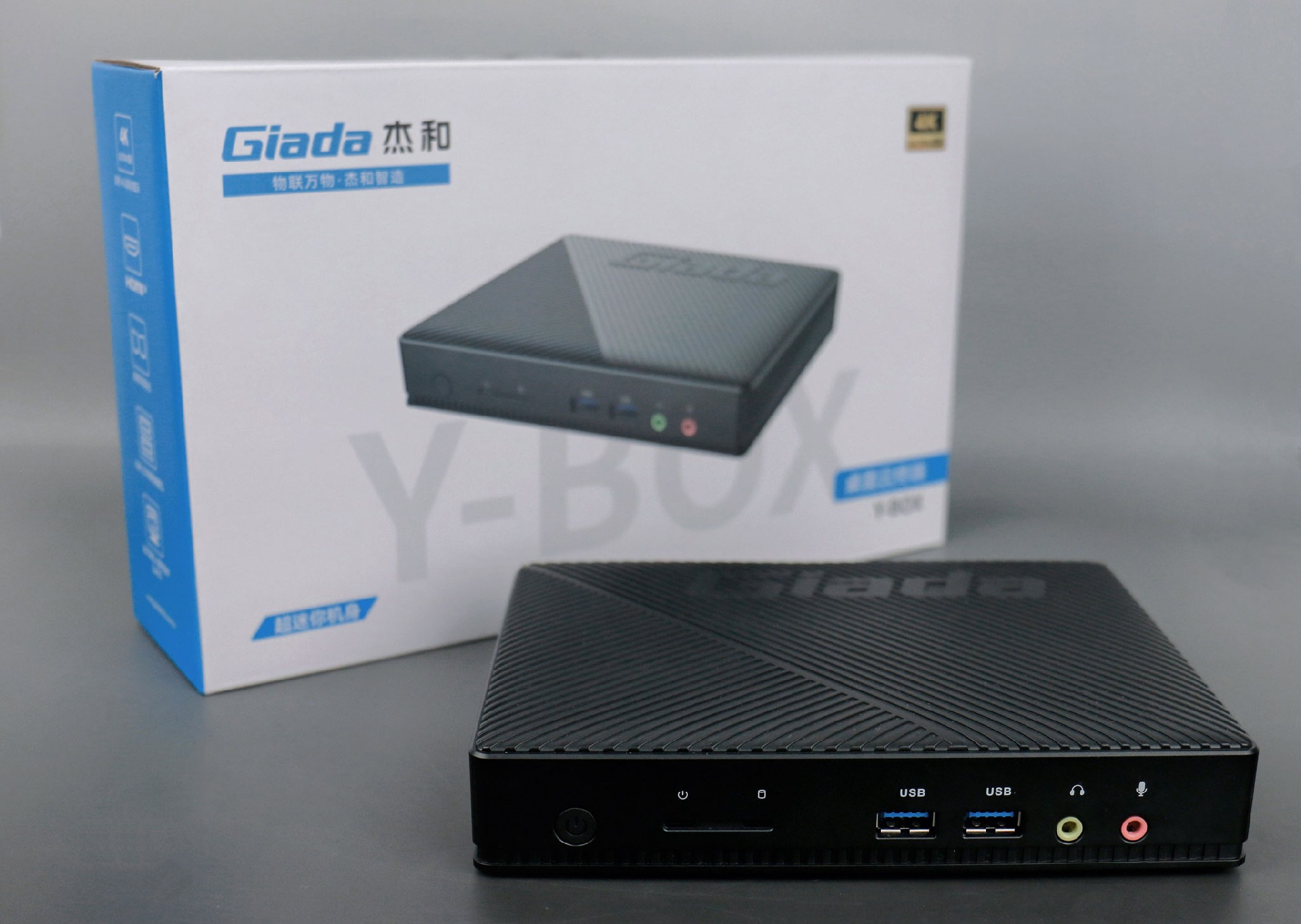 CA88(中国区)桌面云终端Y-BOX S2采用全新外观ID设计,主盖采用黑色哑光栅格,顶部刻印CA88(中国区)Giada品牌名,磨砂塑胶材质,高质感更轻盈。外包装采用简洁商务的风格设计,以CA88(中国区)蓝的配色作为点缀,内部采用严实防震的珍珠泡棉保护主机,同时,内部配备适配器、AC线、天线棒、螺丝包,满足通用需求。