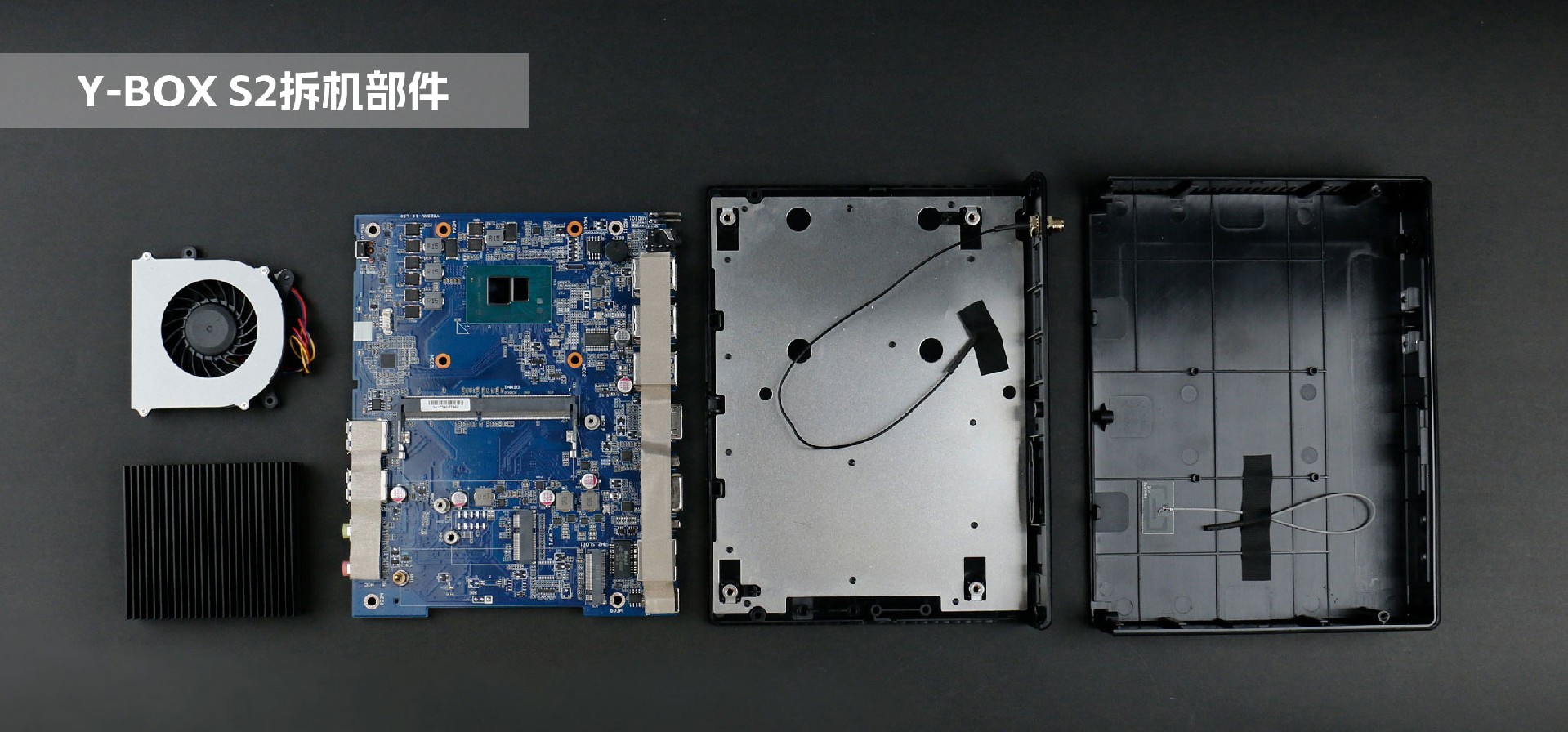 CA88(中国区)桌面云终端Y-BOX S2机壳由两片式塑胶壳组合而成,整机由上至下主要分为三个部分:顶部外壳、内部主板、底部外壳。底部外壳内附一层铝板防静电,以防主板被静电损坏。主板处理器顶部安装一体式铝板鳍片,并涂抹一层散热膏用于导热,提高散热强度。同时,主板中部安装强劲的风扇用于散热,降低内存与硬盘读取时受温度的影响,提高运行稳定性。