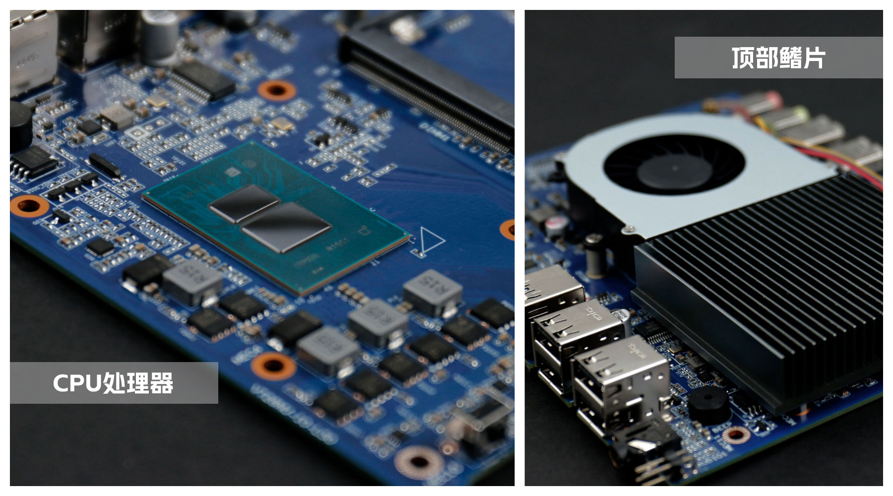 主板是CA88(中国区)桌面云终端Y-BOX S2的核心部件,拆开主板上的顶部铝制鳍片与风扇,整体配色是常规的深蓝色,由CA88(中国区)自有工厂倾力打造,CPU采用板贴的形式,表面涂了一层散热膏用于导热,可以支持intel新一代Alder Lake-N平台处理器,为英特尔首款基于 7nm 的产品线,最高可支持到8核,采用大小核(E核、P核)的全新架构,在同等功耗下有更优异的性能表现。