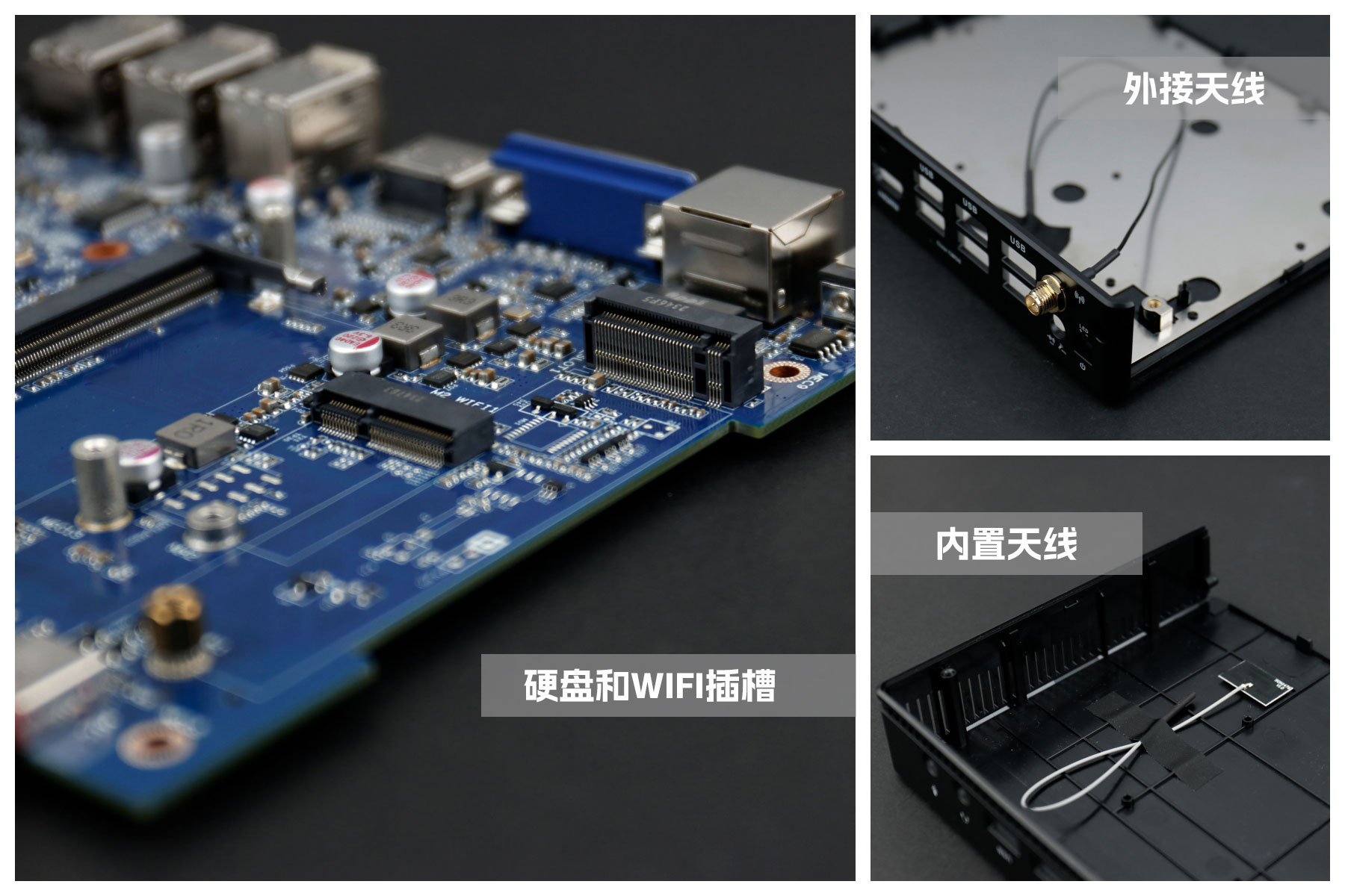 CA88(中国区)桌面云终端Y-BOX S2主板上配备了 1个 M.2 固态硬盘位,接口规格为 PCIe3.0 标准,匹配标准的 2280 规格硬盘。一侧还有一个M.2接口,匹配2230长度的WIFI/BT模块插槽,WiFi模块可以连接的是外接天线,增强信号,同时也可以内接天线,灵活应用,支持Wi-Fi 5/6/6E网络。