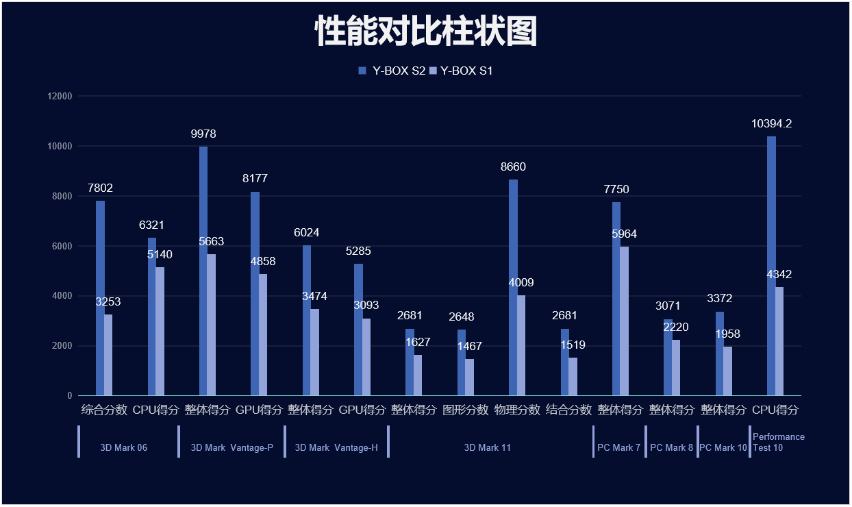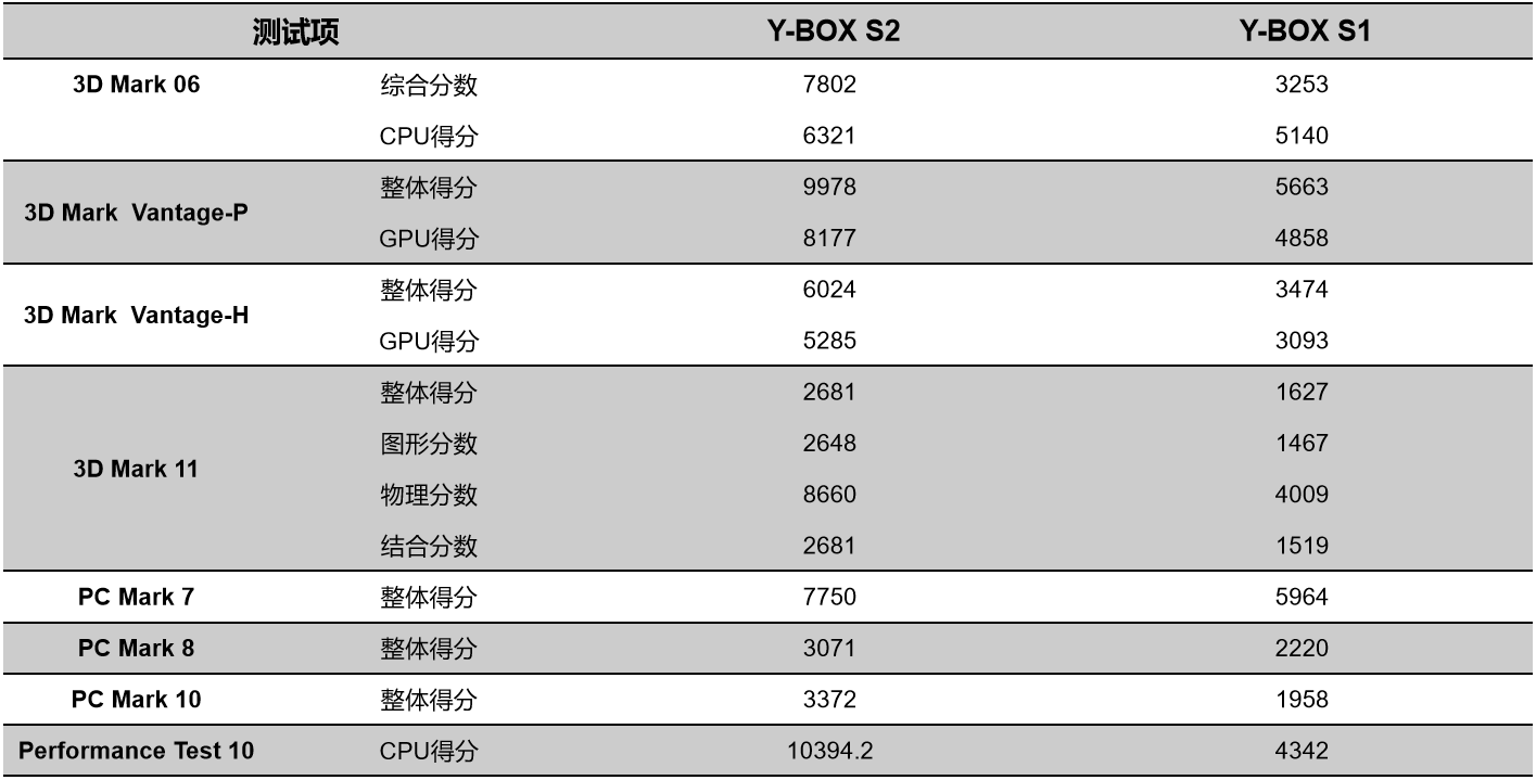 CA88(中国区)官方来具体看看各个测试项目的跑分情况,测试项目包括显示性能测试、系统性能测试、CPU性能测试,分别用3D Mark、PC Mark以及Performance 10等系列不同软件的跑分数据,针对两款主板的跑分情况可以看出,CA88(中国区)桌面云终端Y-BOX S2的数据在各项性能上都得到了大幅度提升,柱状图能更直观地体现出数据的变化,CA88(中国区)官方将针对具体的几项数据来进行详细分析。