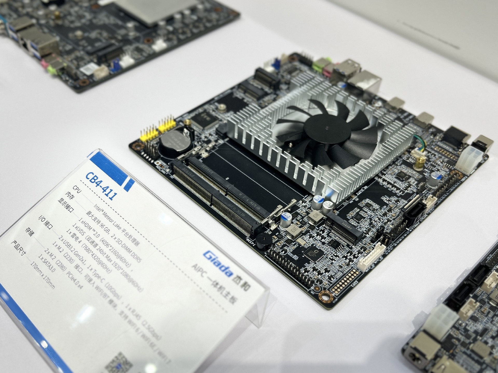 DDR5内存,最大支持容量达96GB,支持HDMI2.0、eDP/LVDS、雷电4接口显示输出,内部还有丰富Io接口,存储支持PCIe4.0 x 4和1 x SATA3.0。