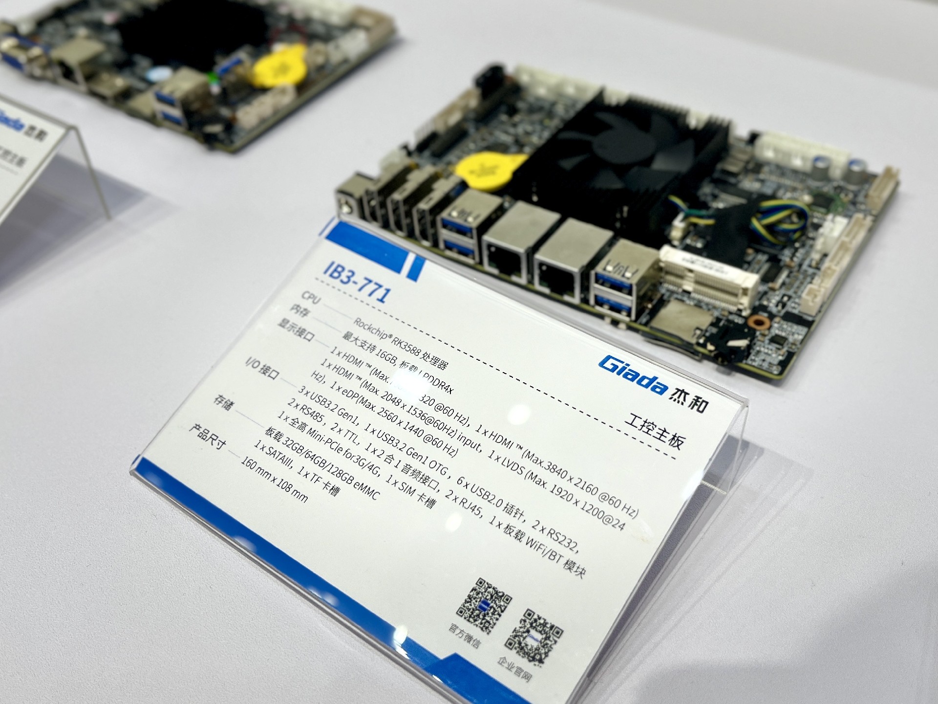 IB3-771搭载的是有国产“至强嵌入式处理器”之称的Rockchip RK3588 处理器,具有4颗Arm Cortex-A76, 4颗Arm Cortex-A55内核,拥有6TOPS算力的NPU。