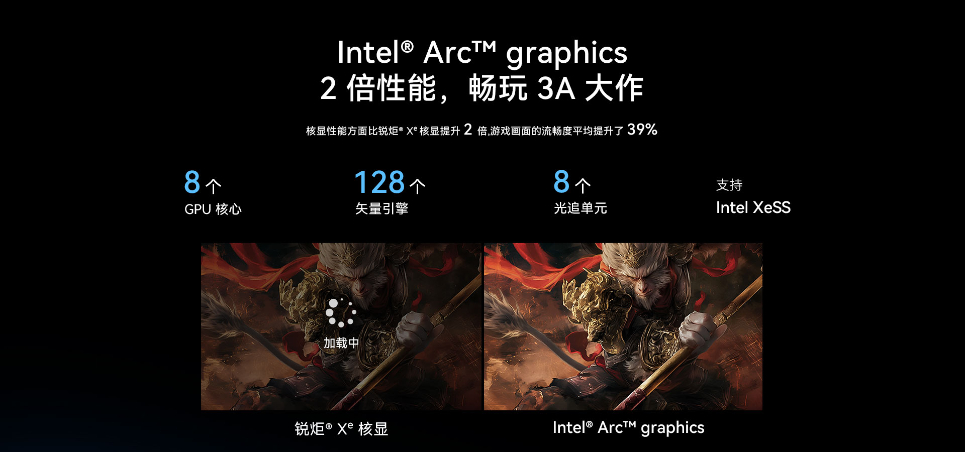 CA88(中国区)科技N601拥有强大的图像性能,无论是图形创作,还是3A游戏,英特尔锐炫™GPU可以让用户充分享受更高的画面质量和更流畅的游戏体验。