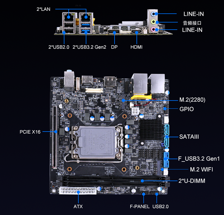 IB5-8131 搭载 Intel® B760 芯片组,支持第12至14代 Intel 处理器,配备2 x U-DIMM DDR5内存,最大支持96GB,频率最高可达5600MHz,可灵活扩展NVMe SSD和2个SATA3.0存储。可同时应对社保查询、缴费计算、票据打印等操作,大大提升办理效率。