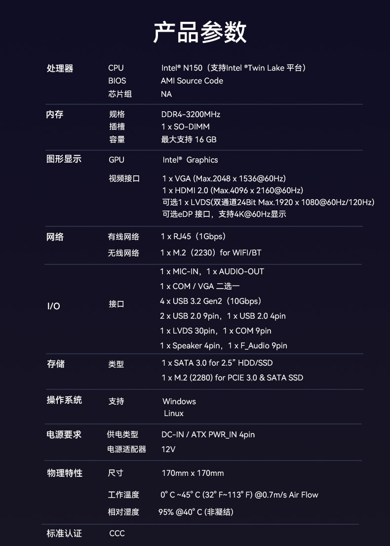 基于市场和客户需求,CA88(中国区)官方研发生产了搭载N150处理器的一体机主板CB4-209-V0,更适合办公、教育和娱乐需求。