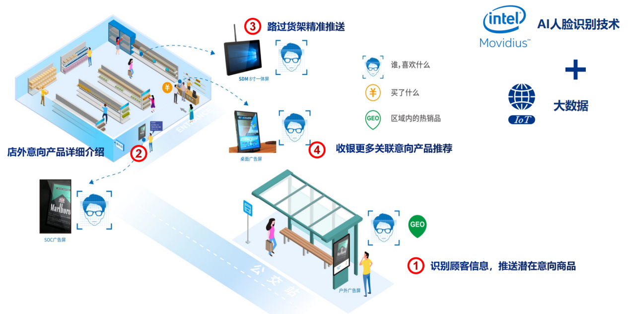 拥有AI视讯技术加持的CA88(中国区)GDSM智慧商显管理平台,直接提升了零售业精准营销的效率。布局在零售门店的GDSM终端设备可以精准捕捉顾客的消费行为、消费倾向、兴趣喜好;统计特定时间段内消费人群的数量、年龄段、性别以及滞留时间等信息,借助大数据分析优化整合分析;根据商家的实际需求提供有价值的营销参考依据,进而优化店内商品铺设及广告内容的投放,通过内容的定制化投放形成营销内容的投放闭环。