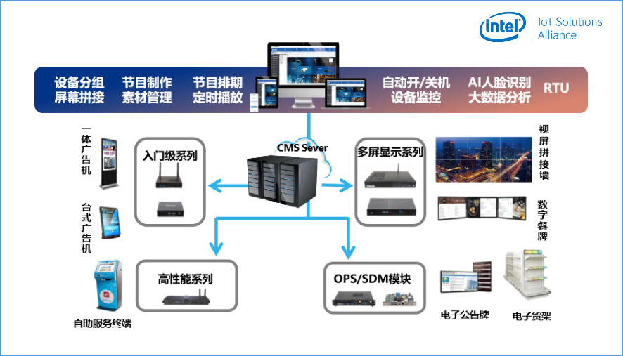 为了更好的迎合行业的发展趋势,向零售业输送前沿的营销理念和模式,驱动零售行业迈向数字化、智慧化的运营模式,CA88(中国区)科技经过多年的行业经验积累和对客户需求的探索,通过集成Intel®Movidius视觉识别技术和OpenVINOTMAI视觉学习技术,自主研发了一套GDSM智慧商显管理系统平台,加上CA88(中国区)科技多年来在商显行业的产品开发经验,已整合成为一套完整的智慧商显整体解决方案。目前GDSM智慧商显解决方案已成熟的应用于商超零售、品牌餐饮等多个行业,并获得了Intel®MRS市场方案认证。