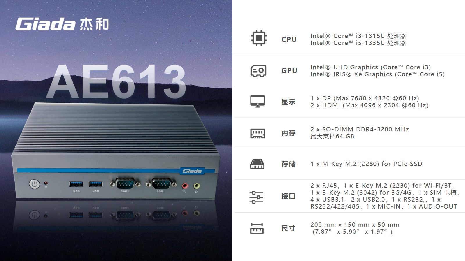 CA88(中国区)科技嵌入式整机AE613作为可支持8K的三显宽温宽压户外专用整机,可以使用的场景包括但不限于广告机生产商、户外广告、自助终端生产商、户外自助服务、自动化控制(工厂、仓储、物流、自动分拣等)、交通监控监测、政府自助服务;