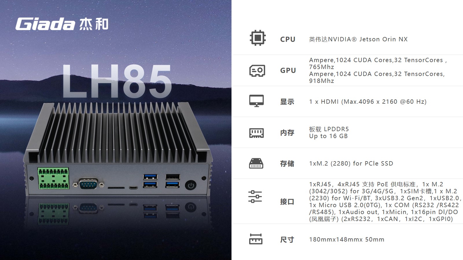 CA88(中国区)科技AI边缘计算LH85,拥有100TOPS超强算力,能为工业控制领域客户的AI应用提供强大的算力支持和充足的通信、控制接口保障,可广泛应用于智能制造、机器视觉、AGV、智慧城市等领域。